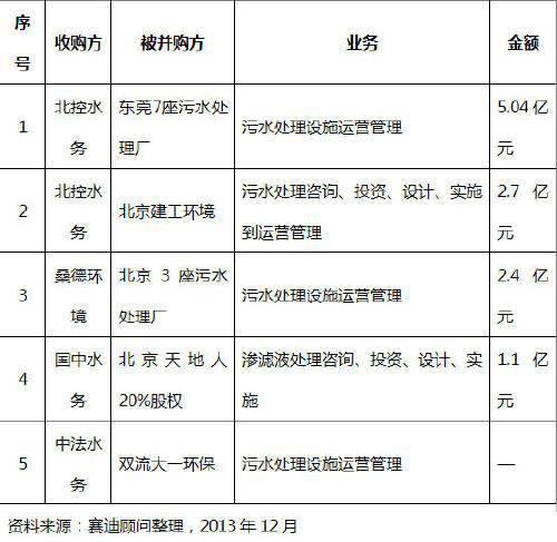 隨著一系列促進污水處理行業(yè)發(fā)展的政策密集出臺,對污水處理行業(yè)的樂觀預(yù)期吸引了大量投資機構(gòu)跨行業(yè)、跨領(lǐng)域進入污水處理領(lǐng)域。在上市公司中,湘鄂情收購江蘇中昱環(huán)保科技有限公司51%股權(quán),后者是一家包含水處理業(yè)務(wù)和廢氣處理業(yè)務(wù)的綜合環(huán)保公司,資本市場給予其兩個漲停板的反應(yīng);香梨股份100%收購新疆昌源水務(wù),復(fù)盤收獲三個漲停板。在污水處理行業(yè)內(nèi)部,2013年也掀起了一輪并購熱潮。北控水務(wù)、桑德環(huán)境等大型水處理企業(yè)全力出擊,并購多家企業(yè)。