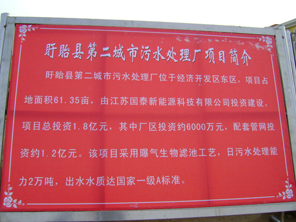 盱眙縣第二城市污水處理廠位于盱眙經(jīng)濟(jì)開發(fā)區(qū)內(nèi),為BOT項(xiàng)目,設(shè)計規(guī)模為4萬噸/日,分兩期建設(shè),一期工程2萬噸/日。