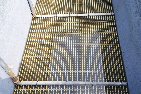 保持足夠的溶解氧濃度是維持曝氣生物濾池內(nèi)好氧生物膜高活性、對(duì)有機(jī)物和氨氮的高去除率的必備條件。曝氣系統(tǒng)采用豐字型曝氣形式,主要由曝氣分配器及支管、單孔膜空氣擴(kuò)散器、固定支架等單元構(gòu)成。